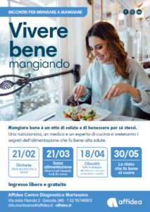 Mangiare bene è un atto di salute e di benessere per sé stessi, Affidea Centro Diagnostico Martesana a Gessate organizza “INCONTRI PER IMPARARE A MANGIARE Vivere bene mangiando“