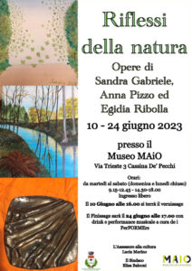 Il Comune di Cassina de’Pecchi presenta la mostra intitolata “Riflessi della natura” di Sandra Gabriele, Anna Pizzo ed Egidia Ribolla che sarà visibile dal 10 al 24 giugno 2023 presso il Torrione Esposizioni Museo MAiO, sede di numerose iniziative e presentazioni del comune, in Via Trieste 3 a Cassina de’ Pecchi.