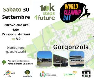 La Città di Gorgonzola parteciperà accanto a 10ksteps 4future, CEM Ambiente, il Comitato Cascina Antonietta – C6, l’associazione di tutela ambientale Let’s do It! Italy e la piattaforma digitale Treeonfy per ripulire il territorio dai rifiuti gettati con incuranza per strada e nel verde di cui tutta la comunità beneficia. E’ la più grande azione civica di un giorno al mondo che coinvolge più di 191 paesi per affrontare la crisi globale dei rifiuti.