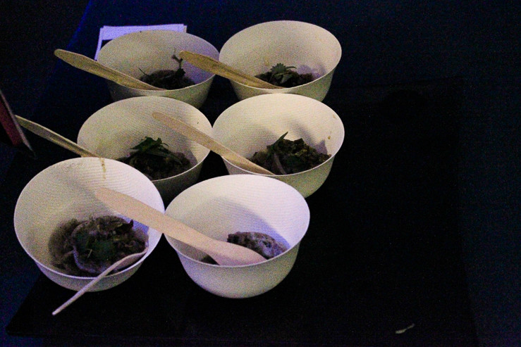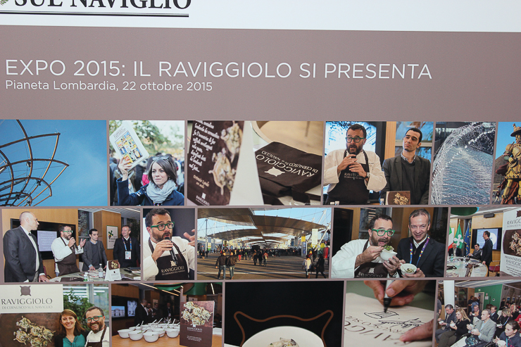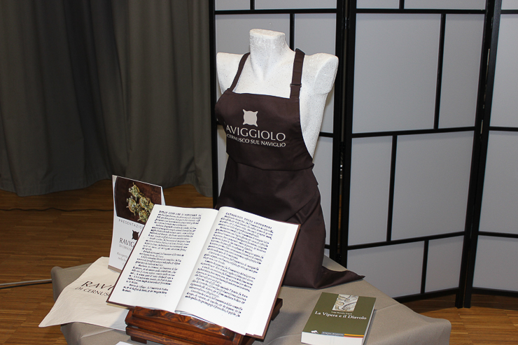 La ricetta sviluppata dallo chef prevede farina di grano saraceno, lumache e moltissime erbe spontanee che sono ancora oggi trovabili nel nostro territorio come per esempio la salvia, il tarassaco e la cicoria. Durante la presentazione ufficiale però (la prima presentazione ad onor del vero si era svolta in Ottobre ad Expo) si è voluta presentare una visione estesa e strategica del progetto, con l’ausilio di ospiti di altissimo livello come il titolare di Altopalato Toni Sarcina e l’architetto Paolo Albano. “Quello che vorrei trasmettere oggi – ha dichiarato l’Assessore al Commercio e Attività Produttive, Ermanno Zacchetti – è che non siamo qui a parlare di un “raviolone”. Stiamo lavorando per trasformare questa suggestione in una piattaforma creativa e concreta di sviluppo potenziale di un territorio, non solo nel campo del food. Ad esempio una start-up locale si è candidata per produrre il Raviggiolo in forma di gioiello utilizzando la tecnologia della stampa in 3D”.