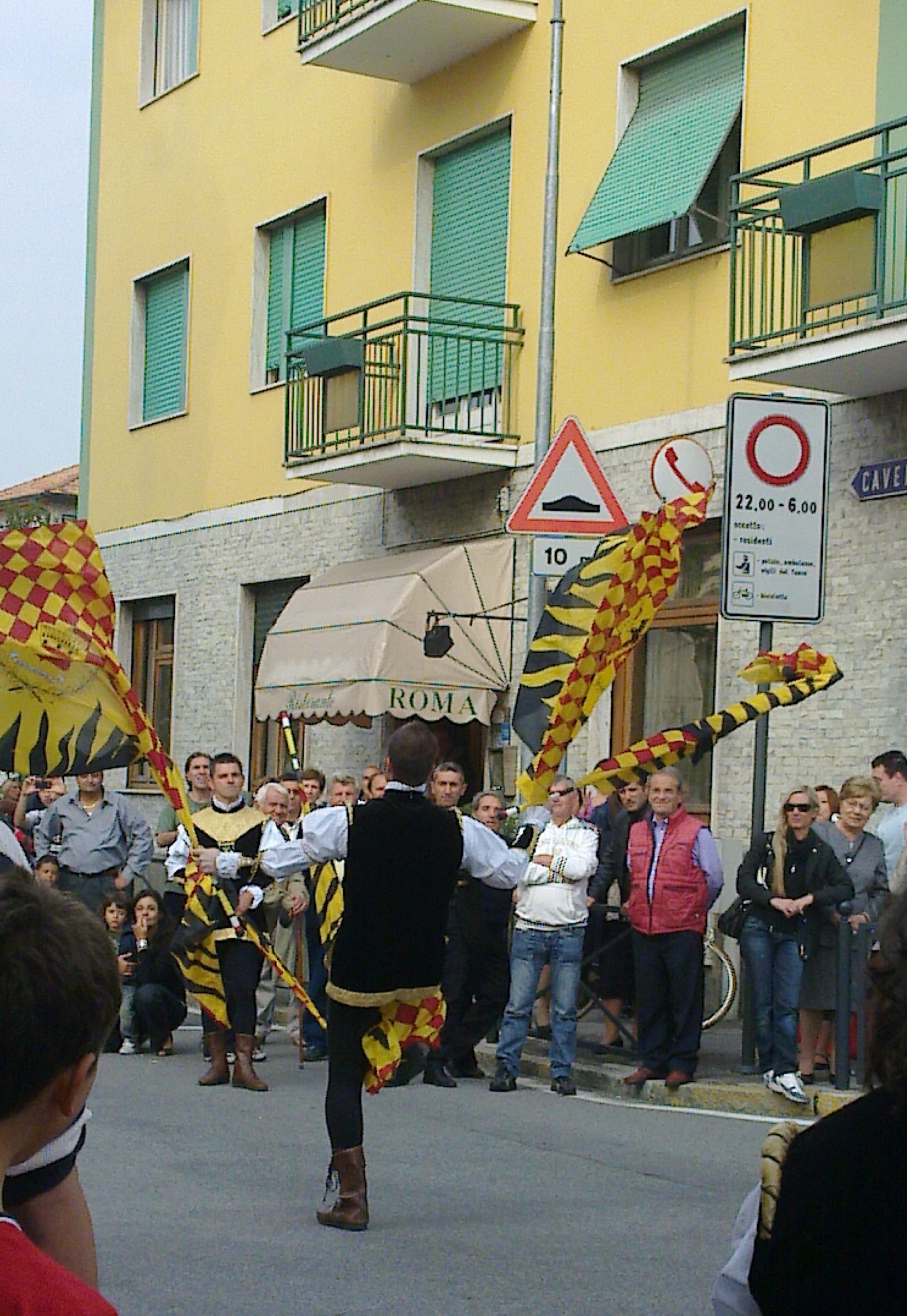 La grande sfilata storica è cominciata alle 15.30, partendo da via Monte S. Michele fino a via Badia, mostrando donne, uomini e bambini in stupendi abiti antichi. Suono di tamburi e svolazzanti stendardi hanno preannunciato l’arrivo del corteo, accompagnandolo per tutta la sua durata.