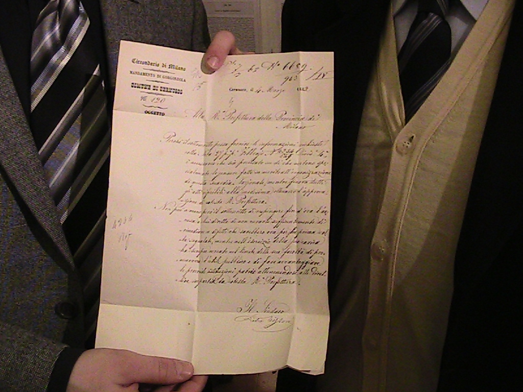 L’unicità e il valore storico del documento sono dovute anche al timbro amministrativo del Comune di Cernusco, al timbro postale di partenza e al timbro di arrivo (5 marzo).