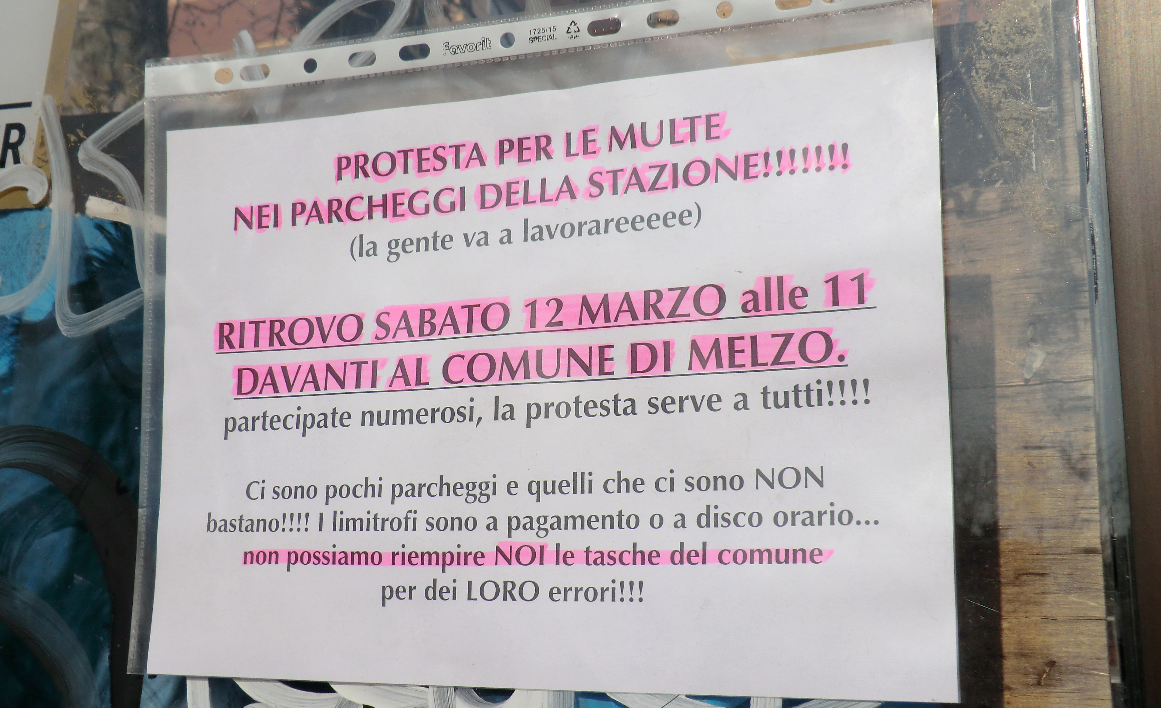 In questi giorni sono comparsi in giro per la città di Melzo alcuni cartelli, non firmati, che invitano alla protesta. Il motivo del malcontento è da ritrovarsi in quel che succede nei parcheggi adiacenti alla stazione dei treni, dove da qualche tempo fioccano le multe.