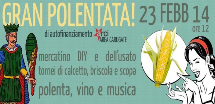 Dunque quello di domenica 23 febbraio, sarà un risveglio all’insegna del cibo, della musica e dello sport per l’Area, che a mezzogiorno aprirà i battenti dell’evento, “tuca no i cart” volto appunto all’autofinanziamento, e con un programma davvero ricco di cibo e intrattenimenti : alle 12.00 polentata a prezzi popolari, e a seguire un pomeriggio di musica e danze, torneo di calcetto, mercatino diy e dell’usato e per chi volesse, anche la possibilità di iscriversi tramite l’indirizzo [email protected] a un torneo di scopa che si terrà alle 15,30.