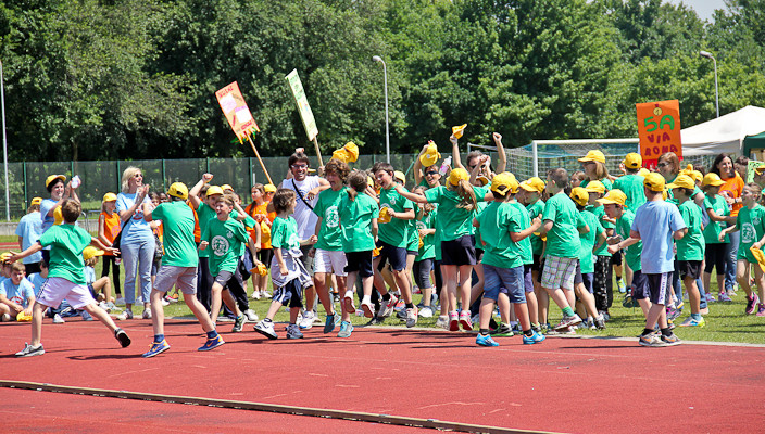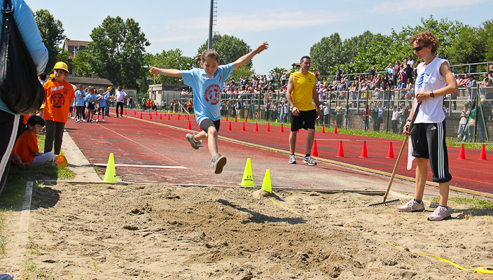 Tutti i bambini hanno partecipato con grande impegno, suddivisi per classi e poi per categorie, maschi e femmine: le prime e seconde si sono sfidate in una staffetta, le terze nel salto in lungo, le quarte nella corsa sui 500 metri e le quinte in una gara di 100 metri a ostacoli. A seguire ogni gara la voce di Fabio Pizzul, cronista d’eccezione.