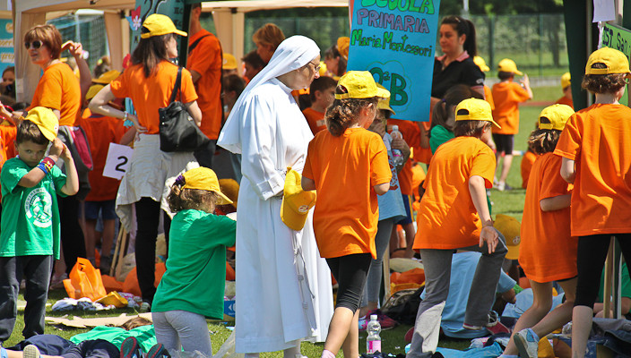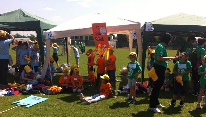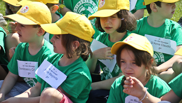 Ogni istituto si distingueva dal colore delle magliette indossate da alunni e maestre: azzurro per la scuola elementare di Via del Ginestrino, arancione per quella di Via Roma e verde per l’Istituto San Giuseppe.