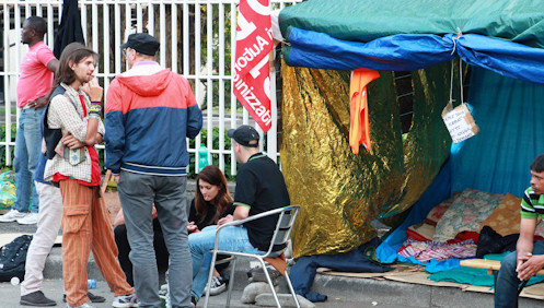 Al presidio, composto di poche sedie, tavoli e qualche rifugio improvvisato, si danno il cambio i 63 lavoratori in sciopero, sostenuti da alcune realtà a loro vicine in questo momento di lotta: “Ci sono persone tra di noi che lavorano per questa azienda da 15 anni– raccontano gli scioperanti- Vorremmo stipendi dignitosi e più rispetto per il nostro lavoro e per le persone che siamo: non di rado ci sono stati rivolti insulti razzisti, anche molto pesanti”.