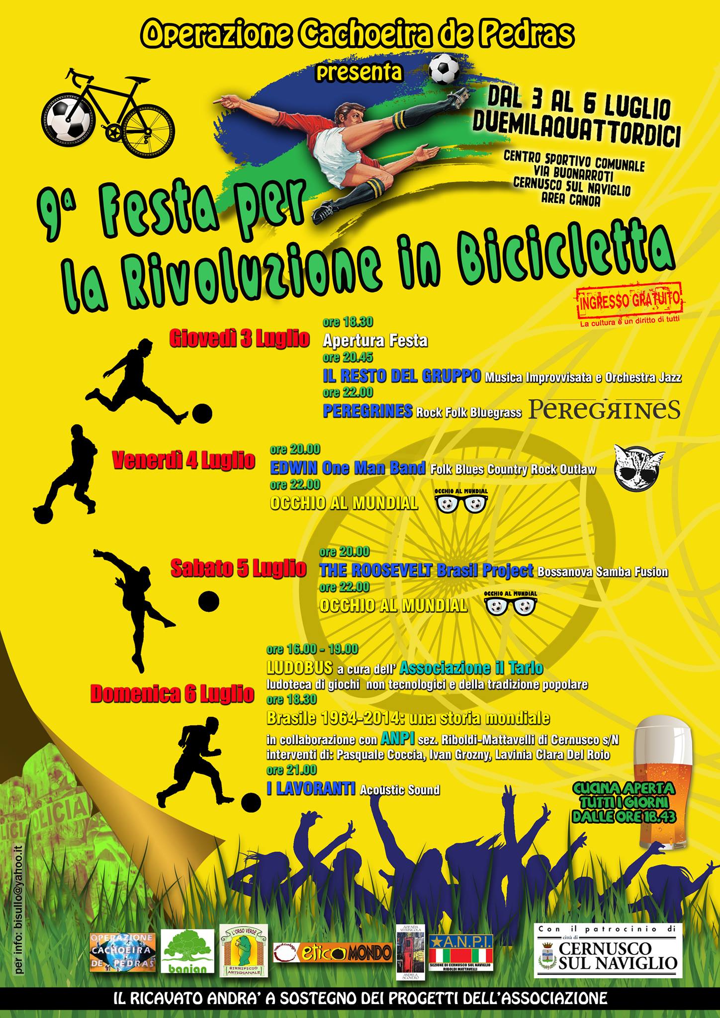 Dal 3 al 6 infatti, presso l’area canoa del Campo Sportivo di via Buonarotti, avrà luogo la nona edizione della “Festa della Rivoluzione in Bicicletta” organizzata dall’associazione culturale Operazione Cachoeira de Pedras, che dal 2001 si propone di creare un legame con alcune realtà del nordest brasiliano, tramite iniziative ed eventi che fanno della pace e della convivenza tra popoli, il suo principale motore.