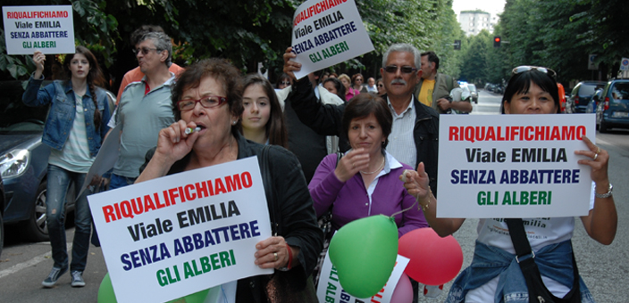 VIA I 200 TIGLI DI VIA EMILIA. I CITTADINI: “PRONTI A LEGARCI AGLI ALBERI”