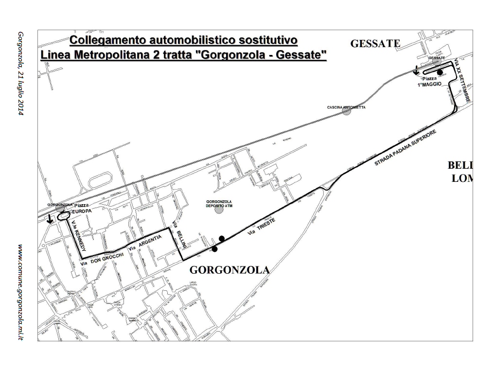 Da Gorgonzola è previsto un autobus sostitutivo che passerà da Piazza Europa (capolinea), e via Trieste (fronte Via Stradivari)