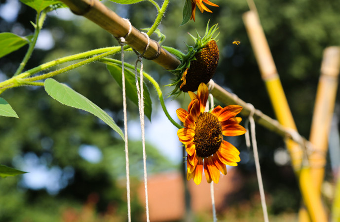 Un altro elemento che concorre sinergicamente alla creazione di questo aspetto dell’orto, è l’utilizzo di compost e paglia per la costituzione del bancale. “la paglia sfavorite la crescita di erbacce e mantiene umida la terra -ha precisato Martina- anche per questo si riesce a risparmiare acqua“.