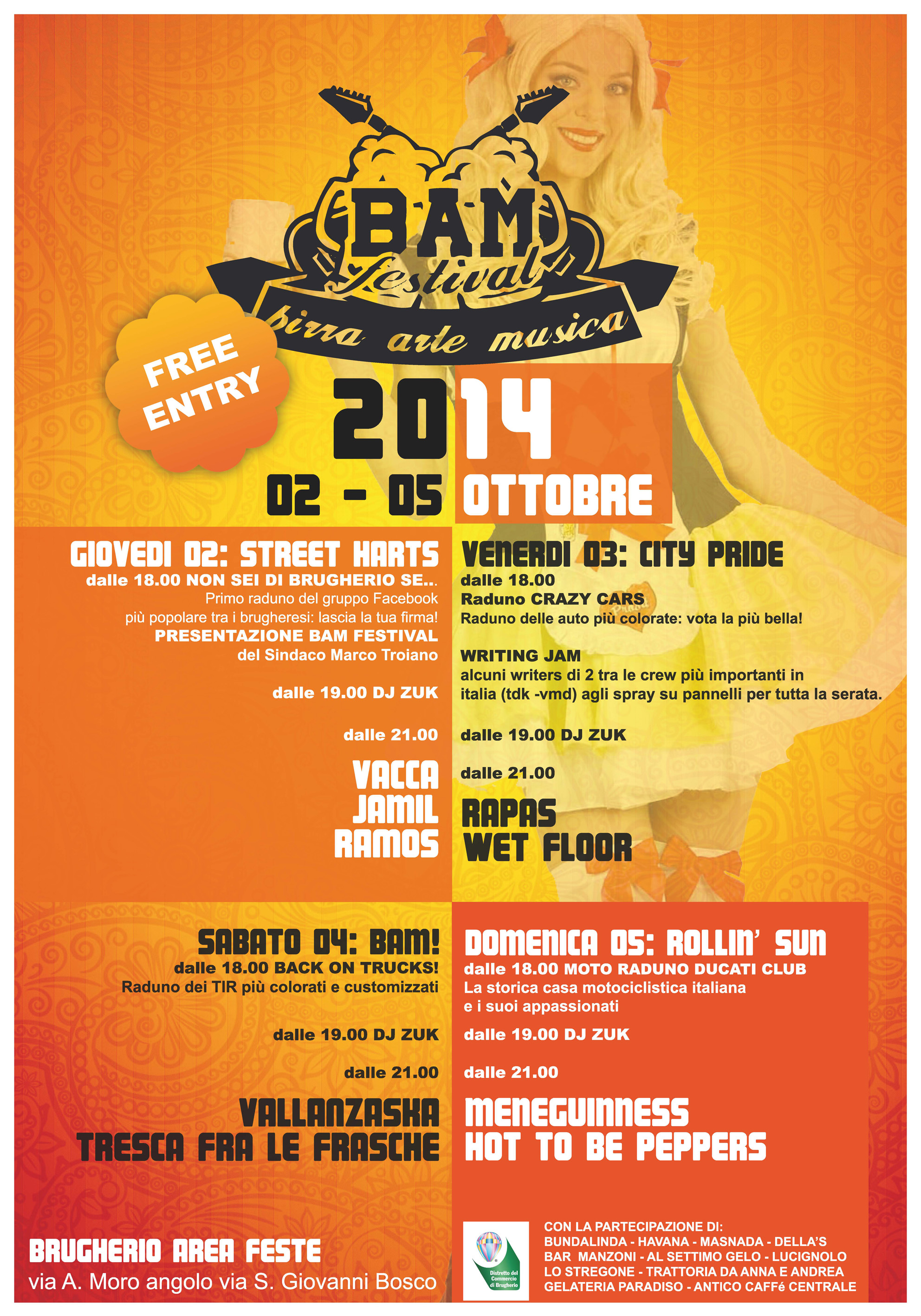 Birra Arte e Musica sono gli ingredienti del BAM 2014, festa della birra che accompagnerà i brugheresi e non dal 2 al 5 ottobre all’area feste di Via Aldo Moro, in un contesto artistico e musicale pieno di eventi di alto livello.