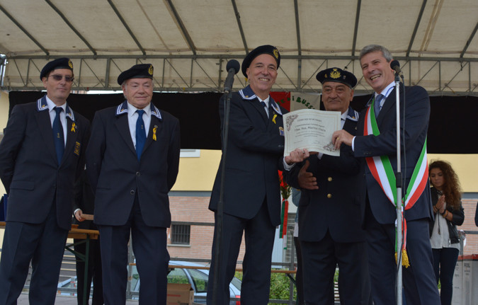 In seguito alla premiazione inaspettata dell’Associazione Marinai d’Italia per il grande successo riscosso dalla mostra fra i più giovani, Albalisa Azzariti, dirigente scolastico dell’Istituto comprensivo di Bussero, è salita sul palco per spiegare la ragione per cui insegnanti e alunni hanno proposto di assegnare alla Protezione Civile il Perin d’Or, l’onorificenza data dal comune ai cittadini che si sono distinti in campo sociale, culturale, artistico e sportivo.