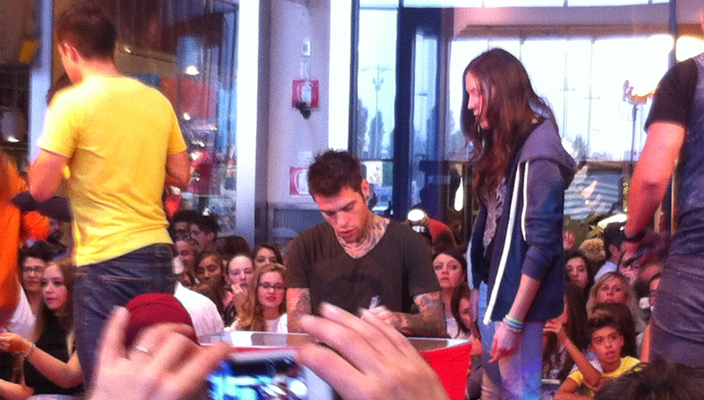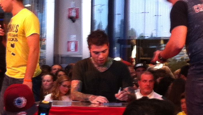 Armato di penna e sorrisi Fedez ha firmato decine e decine di dischi e, nonostante le ultime polemiche che lo hanno coinvolto, il rapper e neo giudice di X Factor è riuscito a dimostrare di avere un enorme seguito di fedelissimi, che con urli e canti hanno fatto sentire la propria presenza.