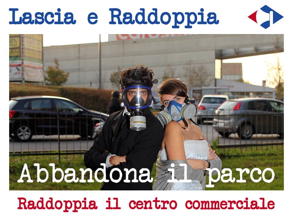 Riprendere provocatoriamente la festa di matrimonio celebrata al Centro Commerciale, e spostarla nel parco, porta esattamente in metafora tutta la battaglia dei movimenti che si sono spesi nel 2014 contro l’ampliamento: opposizione al progetto espansionistico di Eurocommercial, ed esaltazione dell’importanza del Parco Degli Aironi, area verde che verrà in parte destinata a suolo commerciale. Una rappresentazione finta della cerimonia nel parco e non nel centro commerciale, che riassume dunque in un atto le ragioni del “no ampliamento” più volte espresse dai comitati e dai forum (leggi qui il documento di Arci Area)