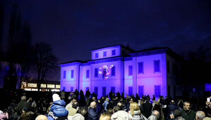 Prima del taglio del Panettone da 100 chili, prima del countdown che ha accompagnato l’accensione dell’Albero, e prima gli incredibili giochi di luce al led animati, sulla facciata di Villa Greppi (vedi video di copertina o clicca qui), il Sindaco Eugenio Comincini si è intrattenuto con alcuni bambini in un simpatico siparietto sul senso dell’albero di Natale, i doni, e la festa.