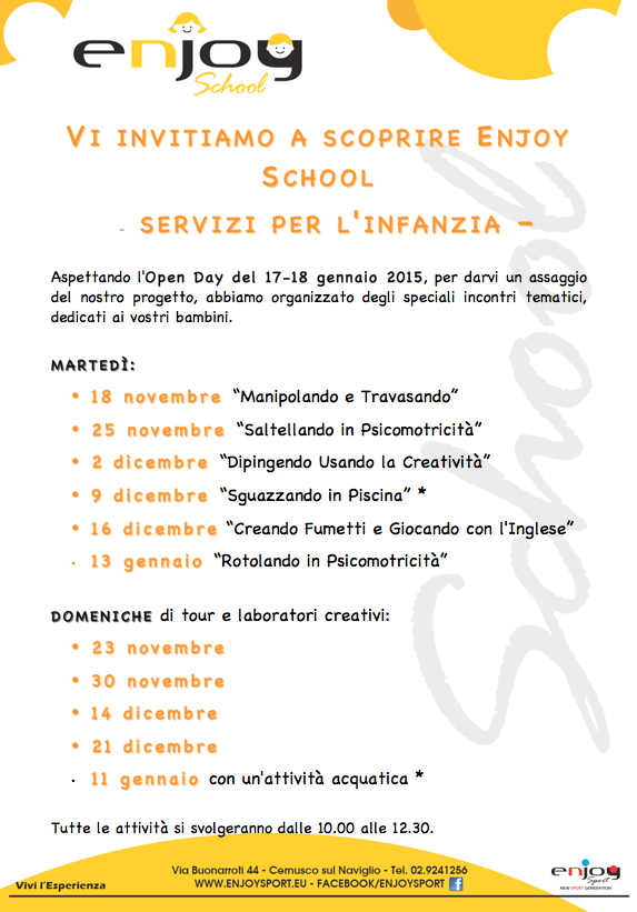e presentatevi all’ Enjoy Center con il vostro piccolo, per un ‘esperienza tutta da scoprire.
