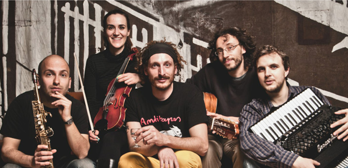Per questo primo appuntamento è attesa la Bublitschki Band, quintetto che incanta con chitarra, violino, percussioni, sassofono e fisarmonica, trasportando il pubblico dai Balcani al Brasile, con tappa nel Mediterraneo e nelle note dell’America del nord. Un mix elettrizzate quello proposto dai cinque musicisti che animano la band: Eloisa Manera (violino), Luca Rampini (sax soprano), Fabio Marconi (chitarra a 7 corde), Guido Baldoni (fisarmonica) e Davide Marzagalli (percussioni).