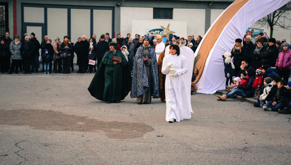 Così, ieri 21 dicembre gli Amici del Presepe Vivente hanno allestito la loro poesia natalizia a tappe, che ripercorre il viaggio di Maria e Giuseppe nella notte in cui nacque Gesù.
