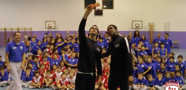 I due amatissimi cestisti dell’Olimpia hanno giocato con i campioni del futuro, estasiati per la sorpresa, ed emozionati in più di un’occasione per essere a stretto contatto con i loro idoli indiscussi. Divertente il selfie finale scattato dai due giocatori con tutti i presenti.