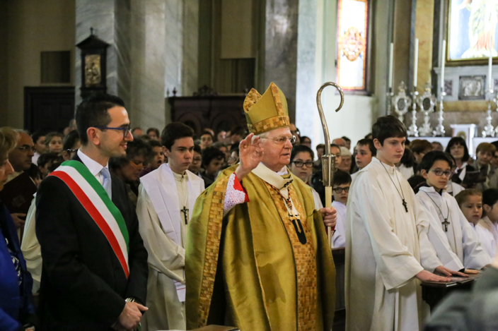 Qui il Cardinale Scola è stato accolto di buon’ora da Don Nello Pozzoni e dal Parrocco Vittorino Zoia, e al termine della visita si è poi recato in Piazza Roma, dove ad attenderlo vi era il Sindaco Marco Troiano con gli assessori Giovanna Borsotti, Graziano Maino, Mauro Bertoni e Miriam Perego, insieme ai consiglieri comunali Andrea Annese e Vincenzo Panza e il Comandante della Polizia Locale Pierangelo Villa.