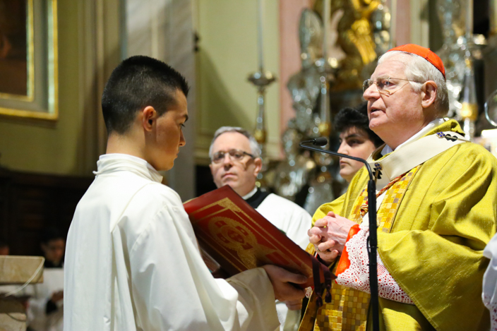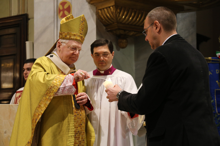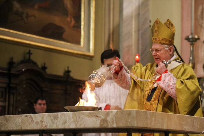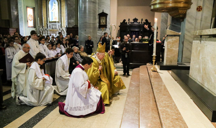 Sono queste alcune delle parole spese dall’ Arcivescovo di Milano Angelo Scola, durante la Messa Solenne nella Chiesa di San Bartolomeo ieri 19 aprile. In una celebrazione che ha incarnato in ogni aspetto l’essenza del rito e dei simboli, il Cardinale ha iniziato con la benedizione dell’acqua nella fonte battesimale, con la quale ha poi asperso sia l’altare che i fedeli “come espressione del desiderio di cambiare che abbiamo nel cuore“, ha spiegato.