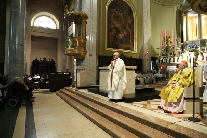 Don Vittorino Zoia ha introdotto i parrocchiani ad una solennità preparata in ogni minimo dettaglio dalla comunità, compresi i canti del bravissimo coro. “Grazie di essere tra noi, presenza di Pastore per la nostra Chiesa -ha detto Don Zoia rivolto all’Arcivescovo Scola– Desideriamo questa celebrazione perché ne abbiamo bisogno, e perché ci farà sicuramente bene”. Con il Parrocco sull’altare, anche altri due sacerdoti della Comunità Pastorale brugherese, Don Alessandro Maggioni e Don Giovanni Reccagni, insieme al Diacono Don Gregorio Josè Simonelli, che diventerà prete a giungo, e a Padre Luigi Peraboni, della Pastorale dei Rom e Sinti della Diocesi di Milano.
