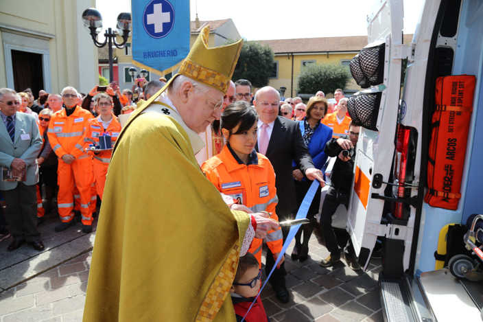 L’Arcivescovo ha tagliato il nastro inaugurale in compagnia della volontaria più giovane della sezione e di un bimbo. Prima di lasciare la città, c’è stato anche il tempo dei saluti con il Sindaco Toriano, con il Presidente della Croce Bianca di Brugherio Sirtori, con il Presidente della Croce Bianca Milano Vincenzo Tresoldi, e con una coppia di giovani volontari che si sposeranno a settembre, e che per l’occasione hanno ricevuto davvero degli auguri speciali.