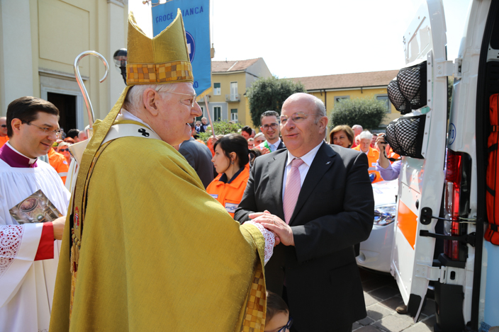 Al termine della celebrazione, il Cardinale si è intrattenuto a salutare i fedeli, stringendo le mani a molti bambini e fermandosi a scambiare due parole con i ragazzi prima di un altro momento importante: la benedizione dei nuovi mezzi acquistati dalla Croce Bianca di Brugherio a proprie spese.