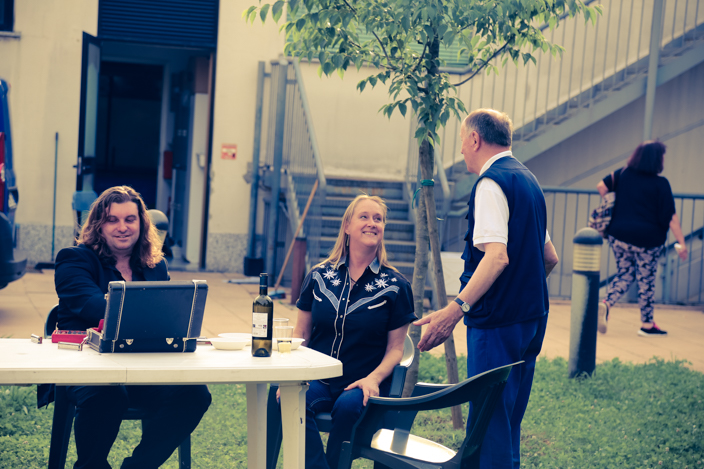 Sempre presenti e ancora più professionali, sono stati sia Radio MXT che i ragazzi del CAG Labirinto, che hanno messo in mostra ancora una volta un grande spirito di servizio, voglia di esserci e fare esperienza, capacità di mettersi in gioco per altri ma anche arricchendo le proprie vite, come ha spiegato bene il giovane 17 enne Davide Bonariva (guarda video di copertina). Anche grazie a questi speciali camerieri, i commensali già intrattenuti dal caldo blues di Fiona Boyes, si sono sentiti senrviti, riveriti e al centro della serata.
