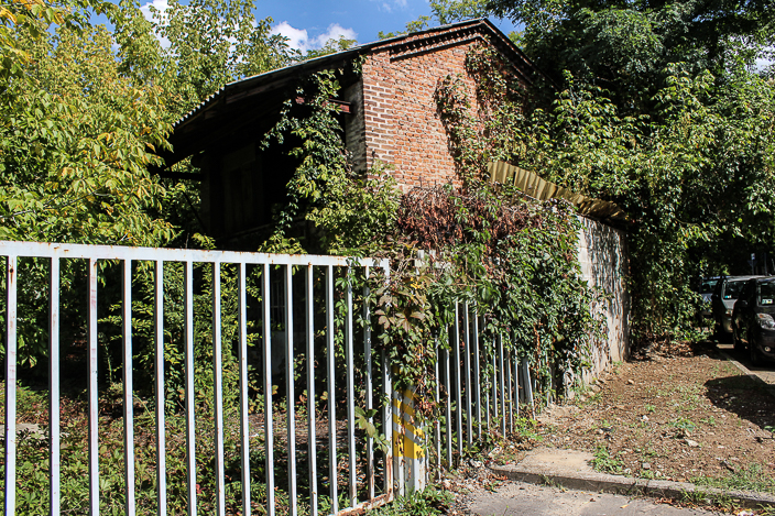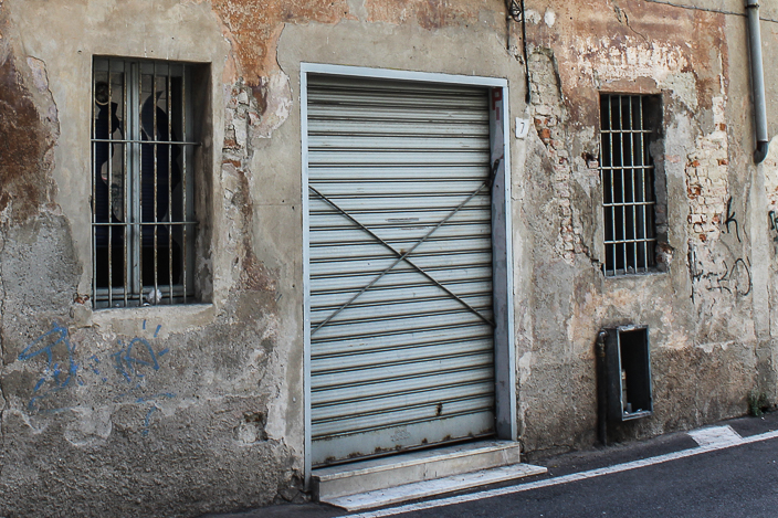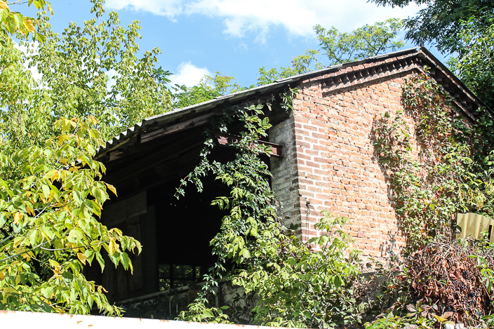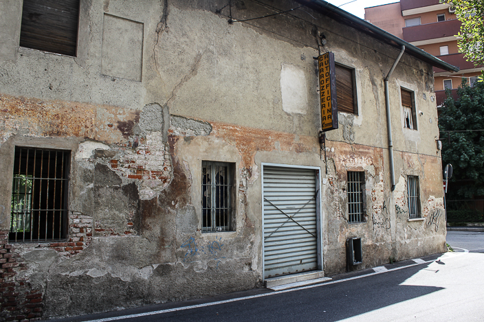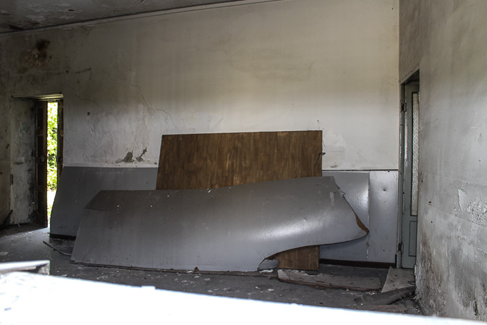Oltre al muro esterno che piano piano si sta sgretolando, buttando un occhio all’interno dell’edificio attraverso le finestre rotte, si possono vedere tavole di legno e metallo abbandonate, sedie rotte e vetri sparsi per terra.