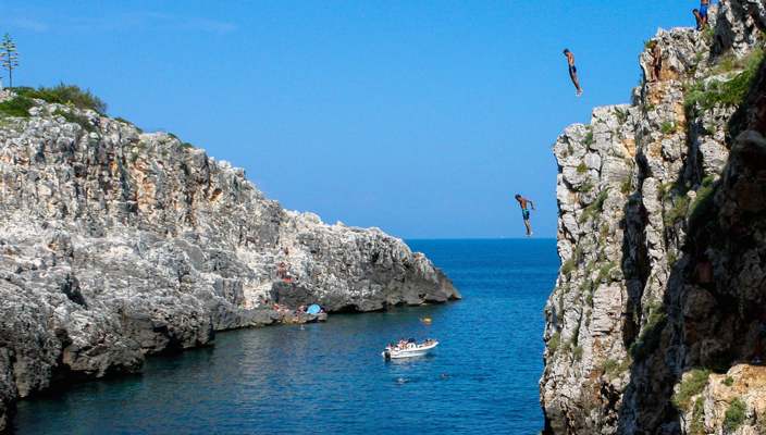 Ebbene, anche qui la lotta ha visto andare al ballottaggio lo scatto, poi trionfante, di Antonio Muggeo “E’ QUI LA FESTA”, e quello di Pietro Dubaldi “TUFFI DAL CIOLO SANTA MARIA DI LEUCA”. Spogliarsi completamente in mezzo alla strada all’improvviso, o tuffarsi da un promontorio dritti in mare ? In entrambi i casi la follia la fa da padrona, ma nel caso immortalato da Muggeo (che spixeliamo per tutela in alcune sue parti), siamo veramente Fuoridalcomune da tutti i punti di vista.