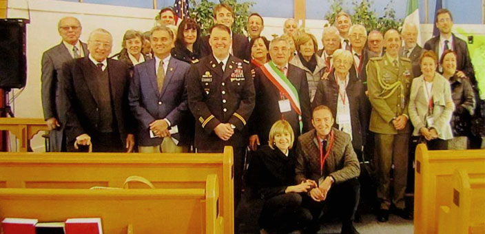 Nella piccola cappella del campo costruita con materiali di riuso dalle sapienti mani dei soldati italiani 70 anni fa, lo scorso 24 ottobre c’erano davvero le massime autorità a rendere onore ai figli e nipoti di quegli italiani prigionieri di guerra. Per citarne alcune, basta ricordare che dal Congresso degli Stati Uniti è arrivato l’ Onorevole Parlamentare Bill Shuster, cui si sono aggiunte le presenze di rilievo del Commissario della Contea di Frankling David Keller, il Council President di Chambersburg Allen Coffman, il Colonnello dell’Ambasciata Italiana Rodolfo Sganga e il Luogotenente Colonnello Trenton, comandante della Letterkenny Munitions Center, ovvero quella che è la base eretta dove sorgeva il campo, e che pare ospitare al suo interno, tra i vari armamenti, anche i famosi Patriots.