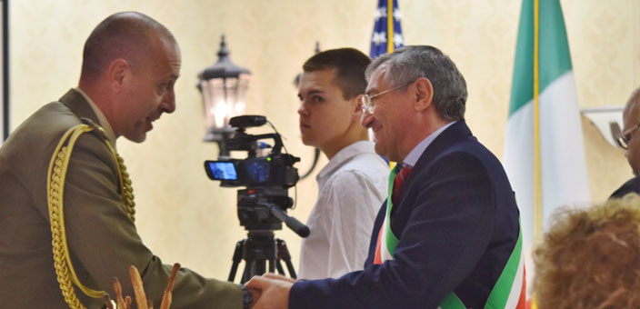 L’intervento del Sindaco in chiesa è stato tra i più applauditi e coinvolgenti, ma il momento più alto ed emozionante è stato l’abbraccio tra gli italiani figli e nipoti dei prigionieri, e i figli e nipoti americani di quei soldati italiani rimasti in America a costruirsi famiglia. Un abbraccio fisico e virtuale che ha lanciato un ponte di unione su 70anni di storia, che resta indelebile nel ricordo ma anche nell’esposizione permanente interna alla cappella di Letterkenny, che racchiude cimeli e foto, dediche e frasi di quei giorni al campo.