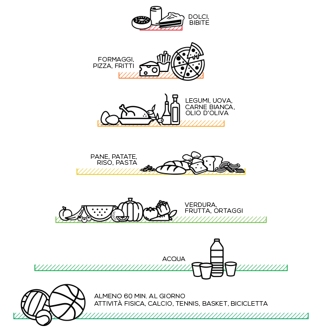 Agli studenti sarà fornito uno strumento fondamentale, il quaderno alimentare, pensato per far conoscere ai ragazzi il piatto “In-forma” (qui il dettaglio) che ha sostituito la più complicata piramide alimentare, e la “Piramide Comportamentale” (qui) che li dovrà guidare nella scelta degli alimenti e dei comportamenti quotidiani.