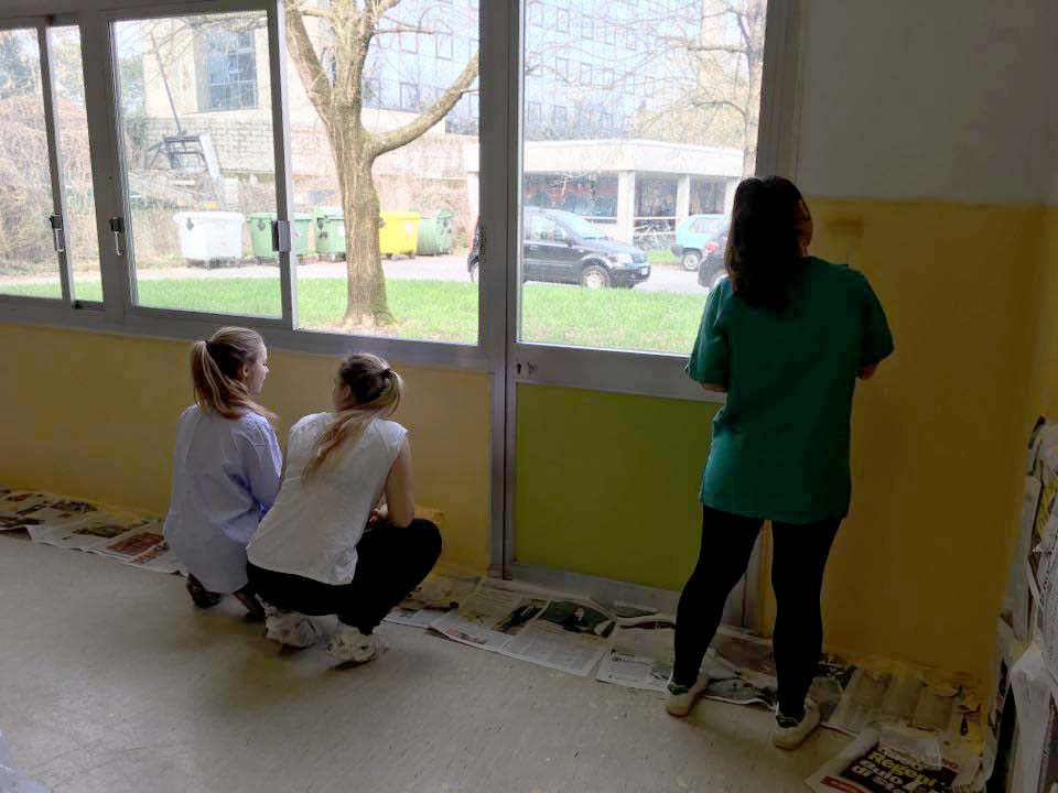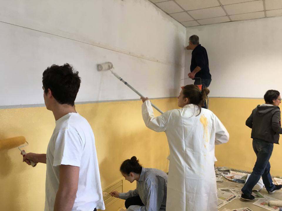 Nonostante questo, in ogni classe che abbiamo visitato, erano davvero in tanti gli studenti armati di rullo, pennelli, cappellini con carta da giornale e improvvisate tute per non sporcarsi, sebbene qualcuno mostrasse strisciate di vernice in viso e gocce di giallo e bianco un po’ ovunque. Erano anni che i rappresentanti d’istituto proponevano questa idea senza però vevenirne a capo: “Ora con la preside nuova avranno pensato di tornare