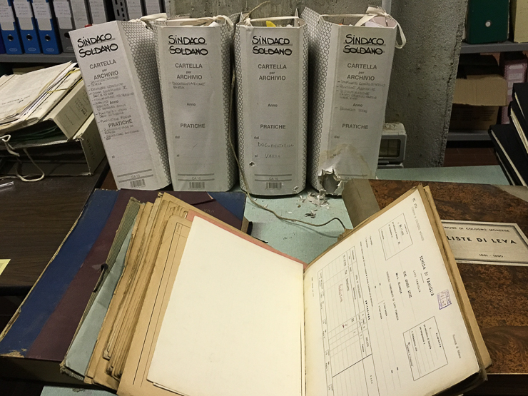 Ci sono faldoni rosicchiati forse dai topi, carte del 1800 segnate irrimediabilmente dall’acqua dai tempi dell’esondazione del Lambro; e poi ovunque documenti comunali, dai conti consuntivi ai rimborsi, dalle trascrizioni di verbali alle cartelle di Equitalia (anche recentissime) non ritirate dai cittadini, passando per le liste di leva, e gli atti municipali relativi ad eventi, palestre, scuole. La pavimentazione è sconnessa o mancante, e stampe storiche sono accatastate in un angolo consunte dall’umidità. E’ questo lo scenario che si apre entrando nel grande spazio che ospita l’archivio principale del comune di Cologno, un enorme locale nei sotterranei di Villa Casati proprio accanto al parcheggio dei dipendenti comunali.