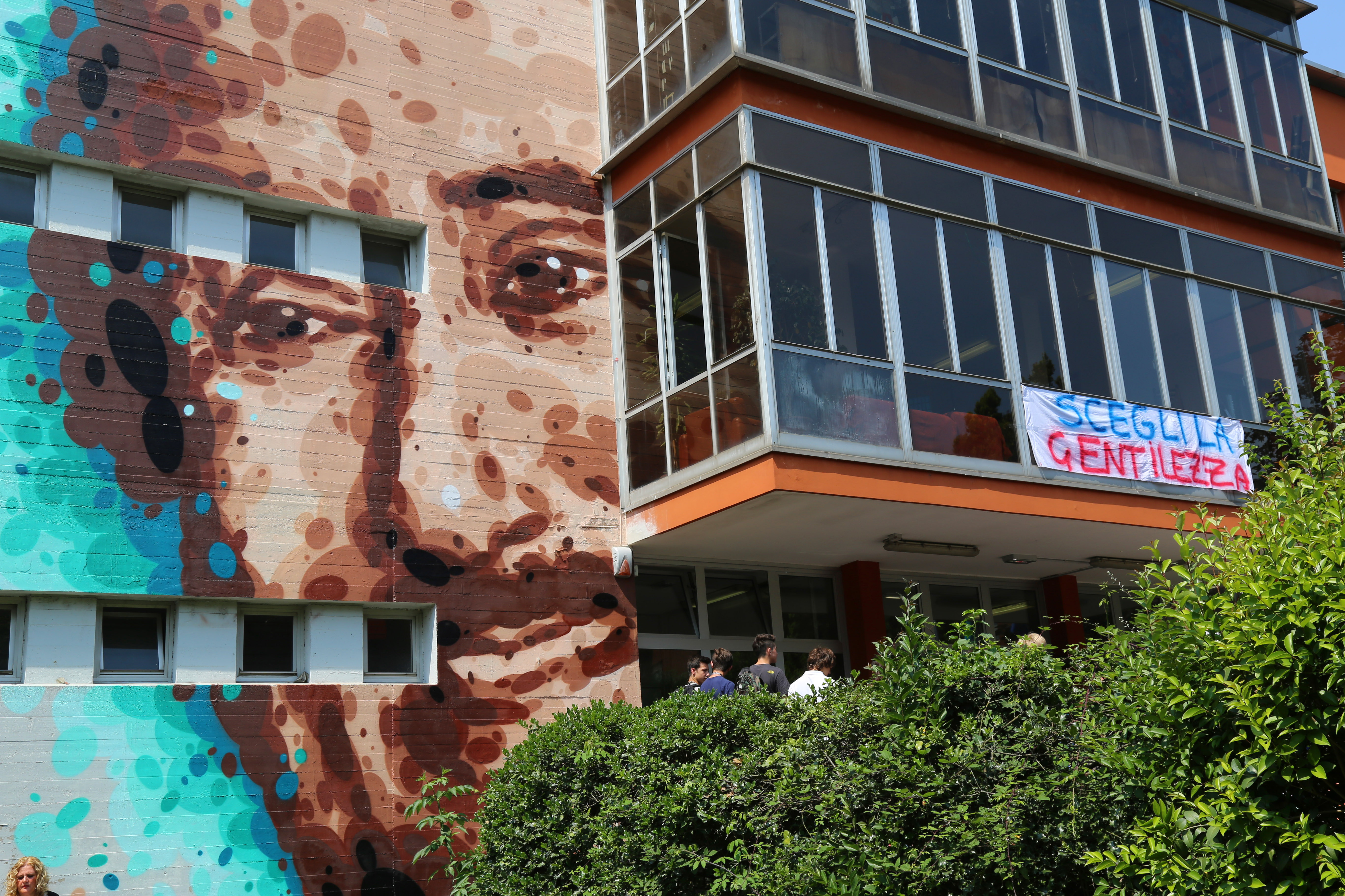 Gli studenti sono davvero protagonisti di quest’esperienza artistica, e lo spiega bene Francesco Muti, in arte Piger, una delle due firme del murales insieme ad Alessandro Conti, Etsom. Francesco ha 25 anni ed è appassionato di calligrafia sin dalla seconda liceo, e dopo una laurea in Desing della