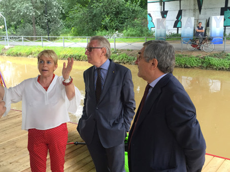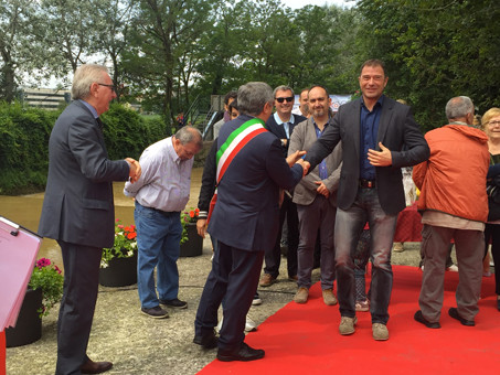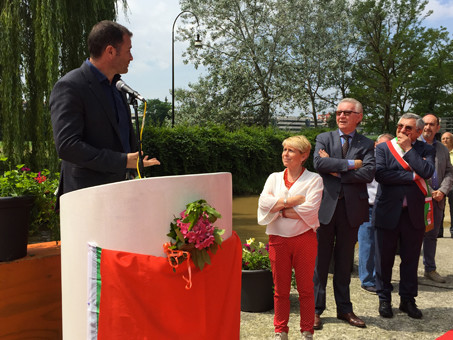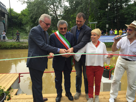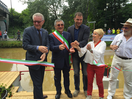 A presentare la nuova struttura lungo il naviglio della martesana il Sindaco Antonio Brescianini, il Vicesindaco con delega all’arredo urbano e alle politiche ambientali, Ivana Broi,gli assessori della giunta comunale vimodronese Osvalda Zanaboni, Luigi Verderio e Sergio Sannino, il Presidente del consorzio ETVilloresi Alessandro Folli e un ospite di eccezione : il campione olimpico di due medaglie d’oro Antonio Rossi ora assessore Regionale allo Sport.