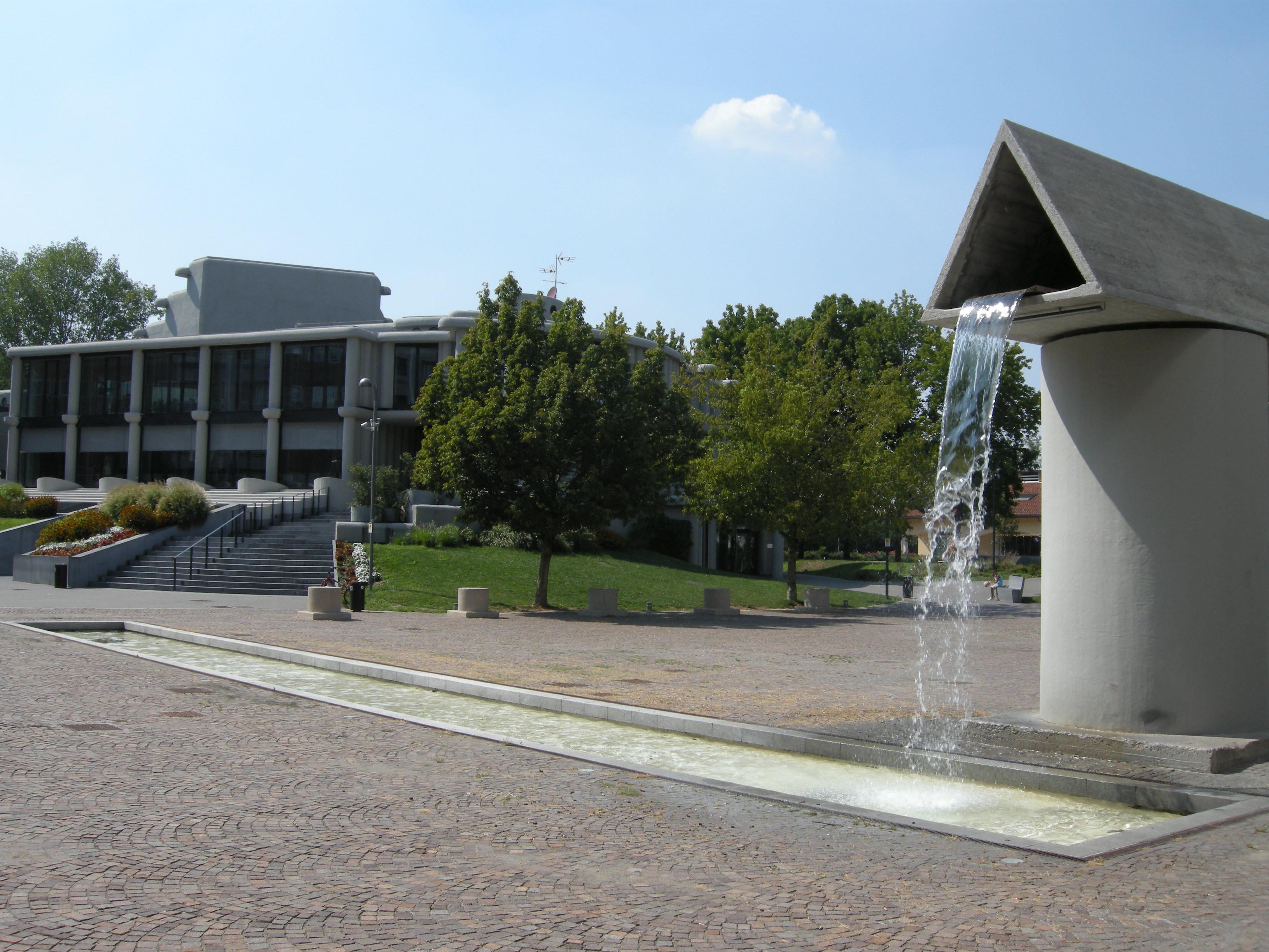 montagne multicolori dei container che aspettano di essere imbarcati nel vicino scalo ferroviario. In fondo alla discesa si prosegue per via Morandi, fino all’incrocio con via Cristei che conduce alla grande piazza caratterizzata dalla fontana monumentale progettata da Aldo Rossi nel 1965 (foto a lato). I severi volumi geometrici della fontana dialogano con le linee morbide e pulite del vicino edificio progettato da Guido Canella nel 1963. Oggi l’edifico che ospita la biblioteca è considerato uno dei più significativi esempi di architettura razionalista.