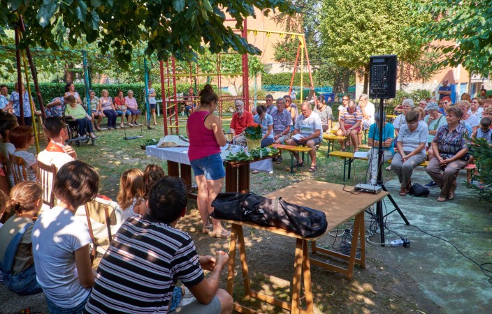 Un bel momento, iniziato intorno alle 15.30 del pomeriggio e protrattosi sino almeno alle 23.00, che ha visto circa 160 persone riunirsi attorno ad un buffet organizzato raccogliendo soldi tra i residenti. Il lungo pomeriggio si è aperto però con un momento di raccoglimento, con una breve celebrazione religiosa presieduta da Don Fabio Rigoldi, cresciuto proprio in questi palazzi, che ha ricordato la bellezza di essere comunità solidale, e la fortuna di avere una casa, per oggi dato di fatto non così scontato.