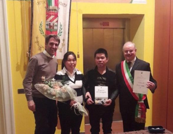 L’Amministrazione ha ricambiato offrendo alla coppia il libro Il paese di Carugate di Alfredo Tornaghi, un mazzo di fiori ed un attestato di ricordo tradotto in cinese contenente un particolare dell’opera I valori immortali del pittore carugatese Nicola Napoletano che rappresenta la famiglia e l’adozione. L’evento trae la sua importanza anche dal contesto in cui è stato celebrato: non solo si è trattato del primo che abbia coinvolto due sposi entrambi di nazionalità cinese, ma si è trattato anche del primo matrimonio dell’anno. Un fenomeno in aumento: nel nord-ovest del Paese nel 2014 i matrimoni celebrati tra sposi entrambi stranieri ammontavano al 3,7%, mentre per quanto riguarda i matrimoni misti la percentuale si alza al 12,4% (dati sempre Istat risalenti però al 2015).