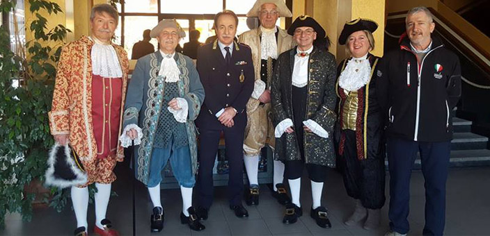 Una piccola delegazione della Compagnia quindi, si è presentata al Comando con i classici vestiti d’epoca, propri del periodo in cui villeggiò a Brugherio il Conte Andreani. Il Comandante Piero Villa ha donato al gruppo dei libri antichi sul volo, e di contro ha ricevuto in omaggio un manifesto e l’invito formale a prendere parte a tutti i prossimi eventi organizzati per il weekend del 18-19 marzo (qui). “Quando c’è qualcosa di importante come il primo volo ascensionale che ha dato il via alla storia dell’aeronautica civile nel nostro paese, è doveroso valorizzarlo. C’è chi non ha nulla ed esalta cose anche minori, dico che è necessario sottolineare ciò che abbiamo di bello e di valore“. ha proseguito Villa.