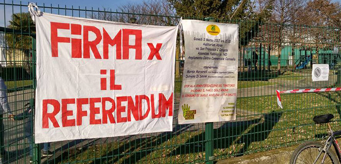 Ricordiamo il quesito: “Vuoi che venga ritirato l’atto di indirizzo votato dal consiglio comunale con delibera n. 2 del 26 gennaio 2017 che da’ mandato al sindaco di promuovere, quale comune capofila, l’accordo di programma presso la regione Lombardia avente ad oggetto l’ampliamento del centro commerciale Carosello”.