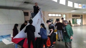 IMG_3839Per la prima volta, quest’anno è stato inserito un ulteriore ramo al progetto, quello delle arti visuali, affidato all’artista senegalese Mor Talla Seck, migrante lui stesso, che ha voluto condividere la sua storia riversandola nell’arte. Collaborando con lui, i ragazzi sono riusciti a realizzare un‘installazione a tema che si trova ora esposta nell’atrio della scuola. “Per la creazione dell’installazione -ha spiegato Talla- ho collaborato con due classi, in due fasi diverse: inizialmente abbiamo steso la pittura su un telo e poi abbiamo realizzato un mosaico di oltre tre metri con materiali plastici. L’opera è stata portata a termine con l’importante contributo di oltre 50 persone e l’abbiamo presentata ai genitori con una piccola performance durante l’evento conclusivo del progetto.”