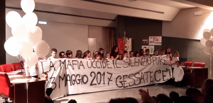 In sala è stato proiettato il video messaggio di Rita Borsellino, sorella di Paolo, che ha ringraziato e commossa ha detto: “Sono contenta di poter essere tra di voi per un’iniziativa importante che state facendo e che mi dà gioia nella continuità dei rapporti umani che sono memoria e costruiscono il futuro. Mi ha colpita profondamente perché la scuola trasmette memoria del passato e sguardo in avanti e anche perché questo progetto ha coinvolto tutta una comunità intera e qui la memoria di Giovanni e Paolo si è amplificata, approfondita, porta frutti abbondanti e consegnata alle future generazioni”.