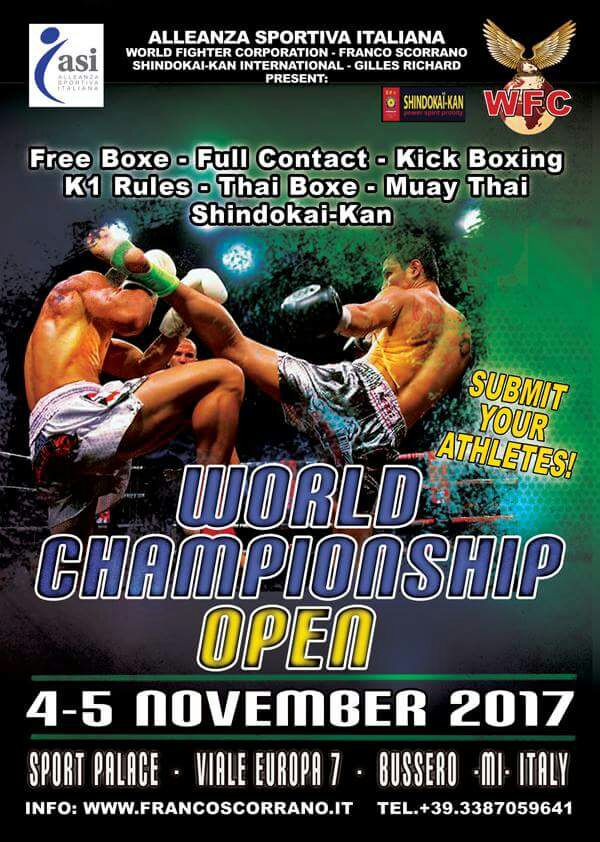 Alleanza Sportiva Italiana con la World Fighters Corporation di Franco Scorrano e Shindokai-kan International di Giles Richard, presenterà sabato 4 novembre e domenica 5 dicembre, la World Championship al Pala Sport, in Viale Europa 7, di Bussero.