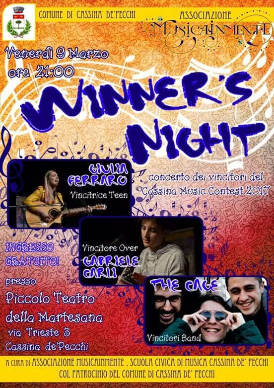 Winner’s night, un concerto con I vincitori del Cassina Musica Contest 2017: Giulia Ferraro, Gabriele Carli e i The Cage