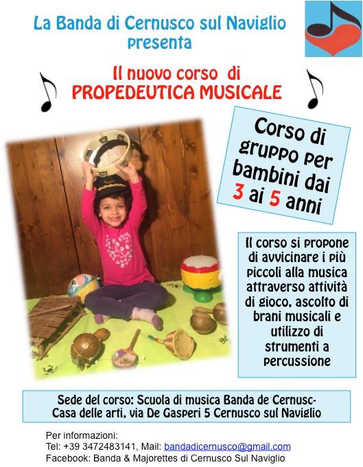 La banda di Cernusco mette i più piccoli al centro di una nuova iniziativa, tutta a misura di bambino. Si tratta di un corso di propedeutica musicale dedicato ai bambini di età compresa tra i 3 e i 5 anni, che si pone l’obiettivo di avvicinarli alla musica attraverso attività ludiche.