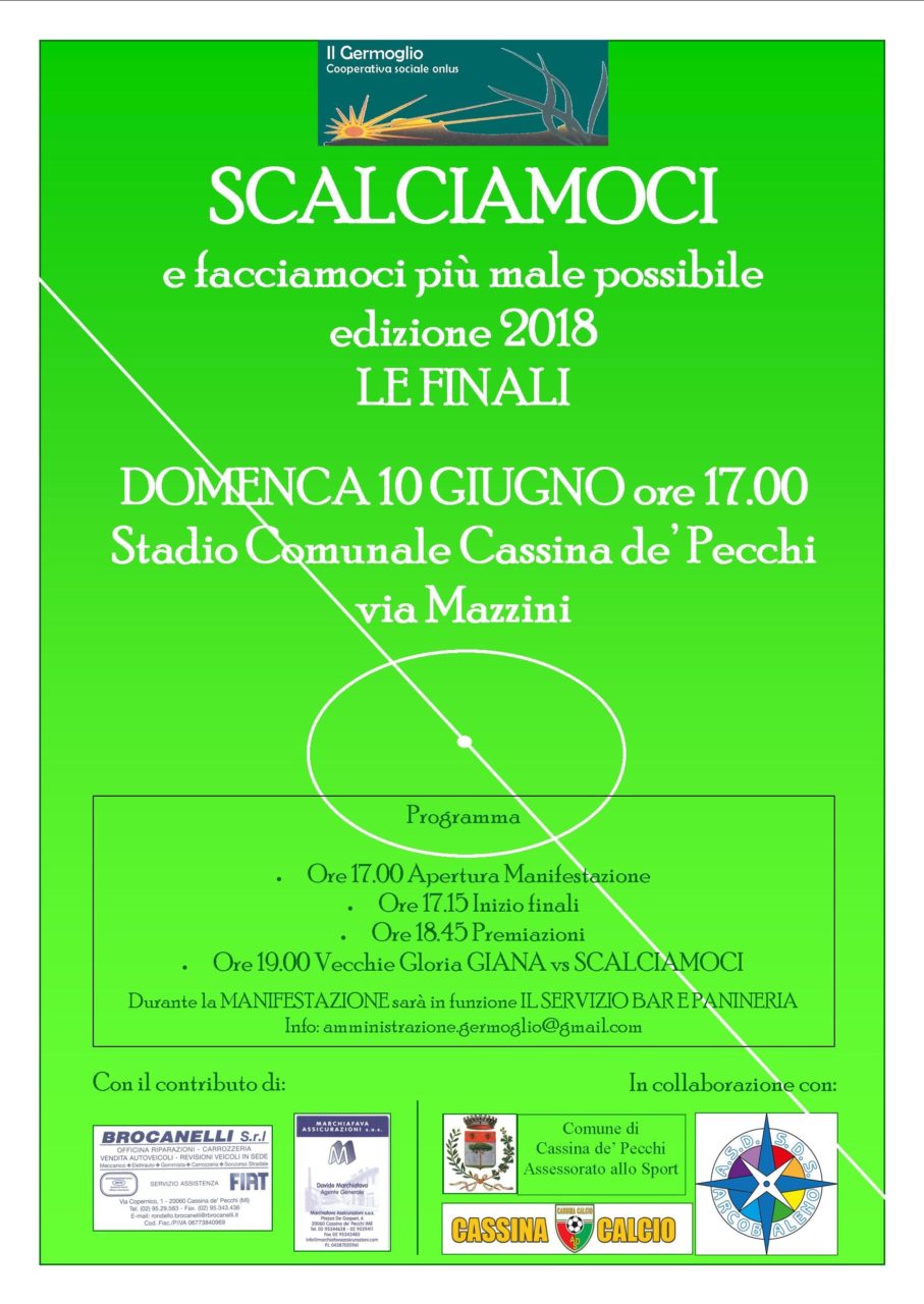 Giugno è tempo di finali sportive per tutti, anche per la Cooperativa il Germoglio e le finali del torneo di calcio Scalciamoci2018. Le finali si svolgeranno il 10 giugno ore 17.00 presso lo stadio Comunale di Cassina Dè Pecchi in Via Mazzini. La manifestazione si concluderà alle ore 18.45 con le premiazioni. Durante la manifestazione sarà in funzione il servizio bar e panineria.
